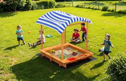 Keezi Kids Sandpit Wooden Boat Sand Pit with Canopy Bench Seat Beach Toys 150cm