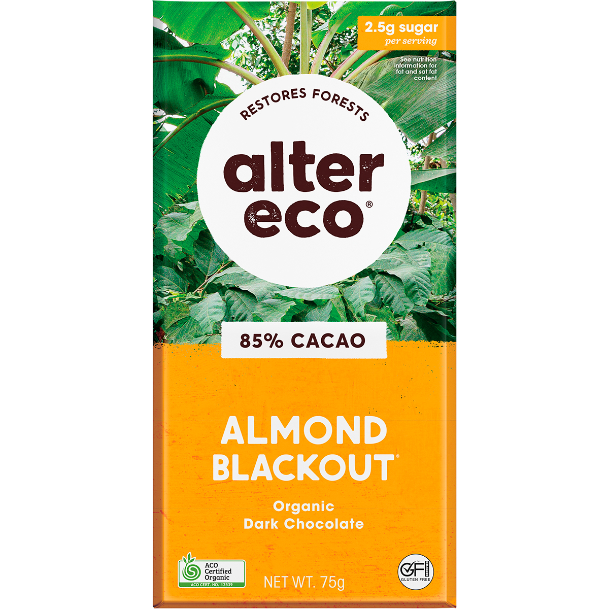 Chocolate Organic Dark Almonds Blackout 12x75g
