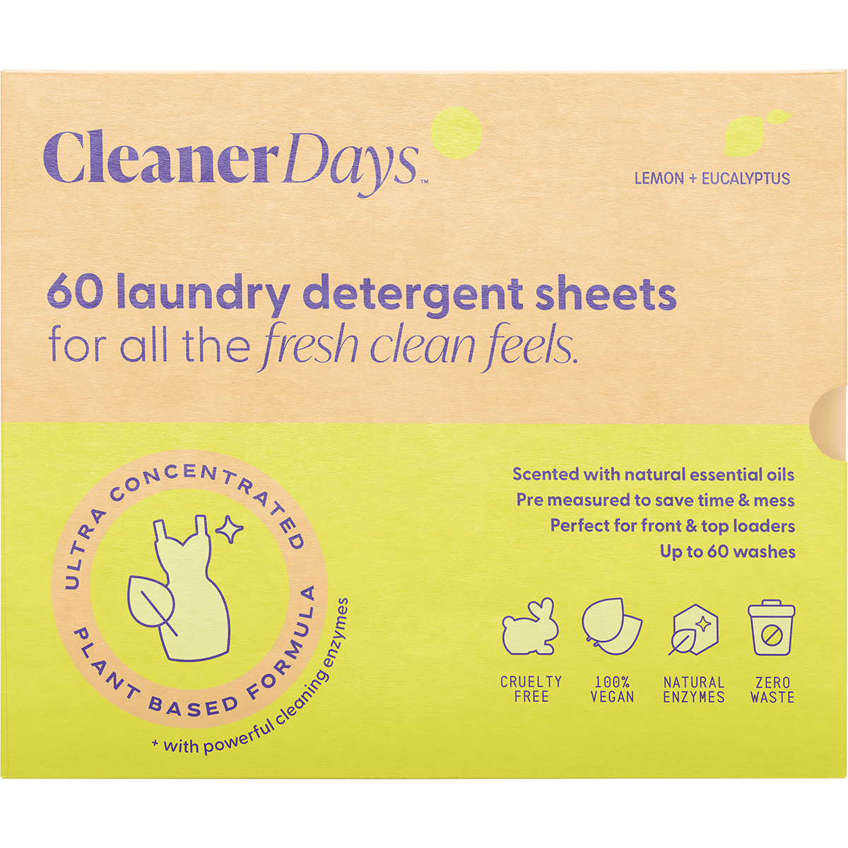 Laundry Detergent Sheets Lemon + Eucalyptus 60pcs