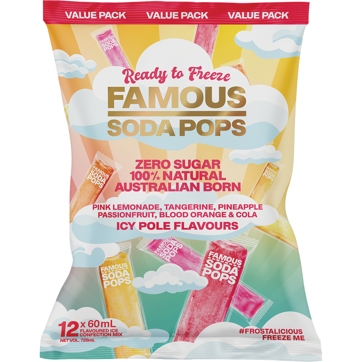 Zero Sugar Soda Pops Assorted Icy Poles 12x60ml