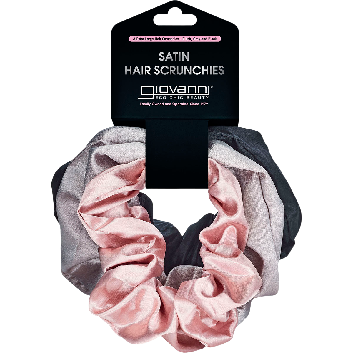 Satin Hair Scrunchies Blush, Grey, Black Extra large 3pk