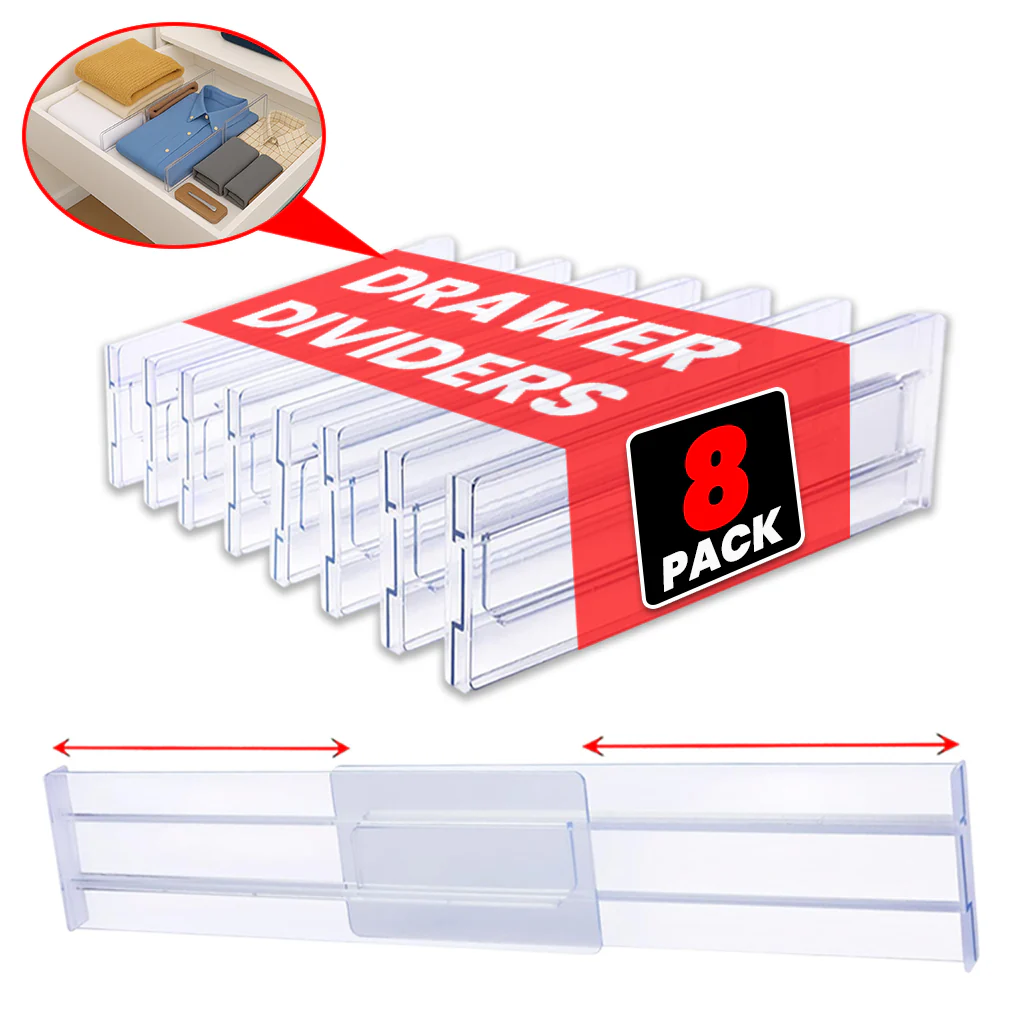 Adjustable Drawer Dividers 8-Pack Expandable Organizers for Kitchen & Home