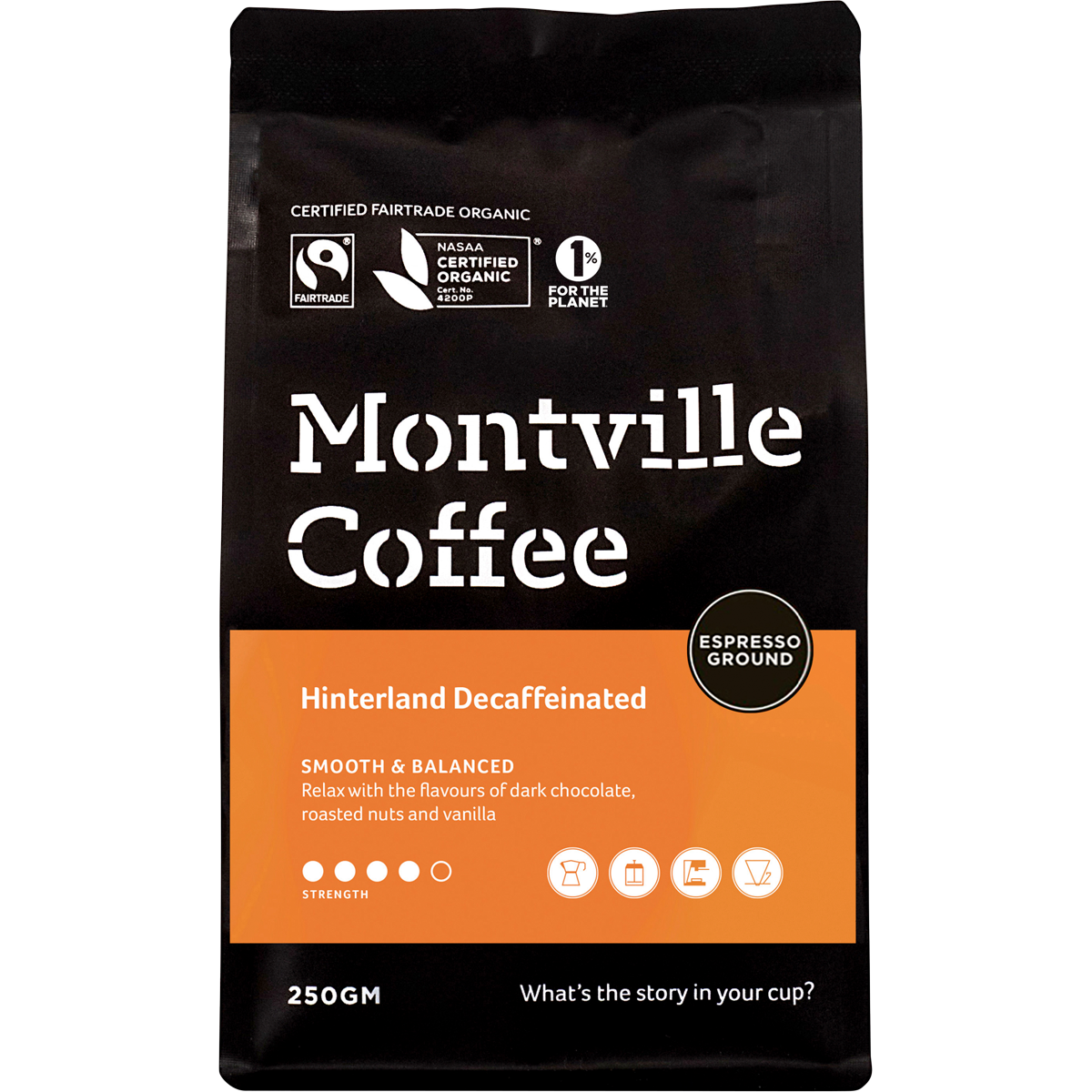 Decaf Coffee Ground Espresso Hinterland Blend 250g