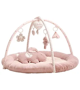 Baby Play Gym Mat, Tummy Time Mat with 6 Detachable Sensory Toys, 41.7" x 41.7" Large-Sized Baby Newborn Activity Mat with Fold-up Sides & Soft Fabric for Sensory and Motor Skill Development