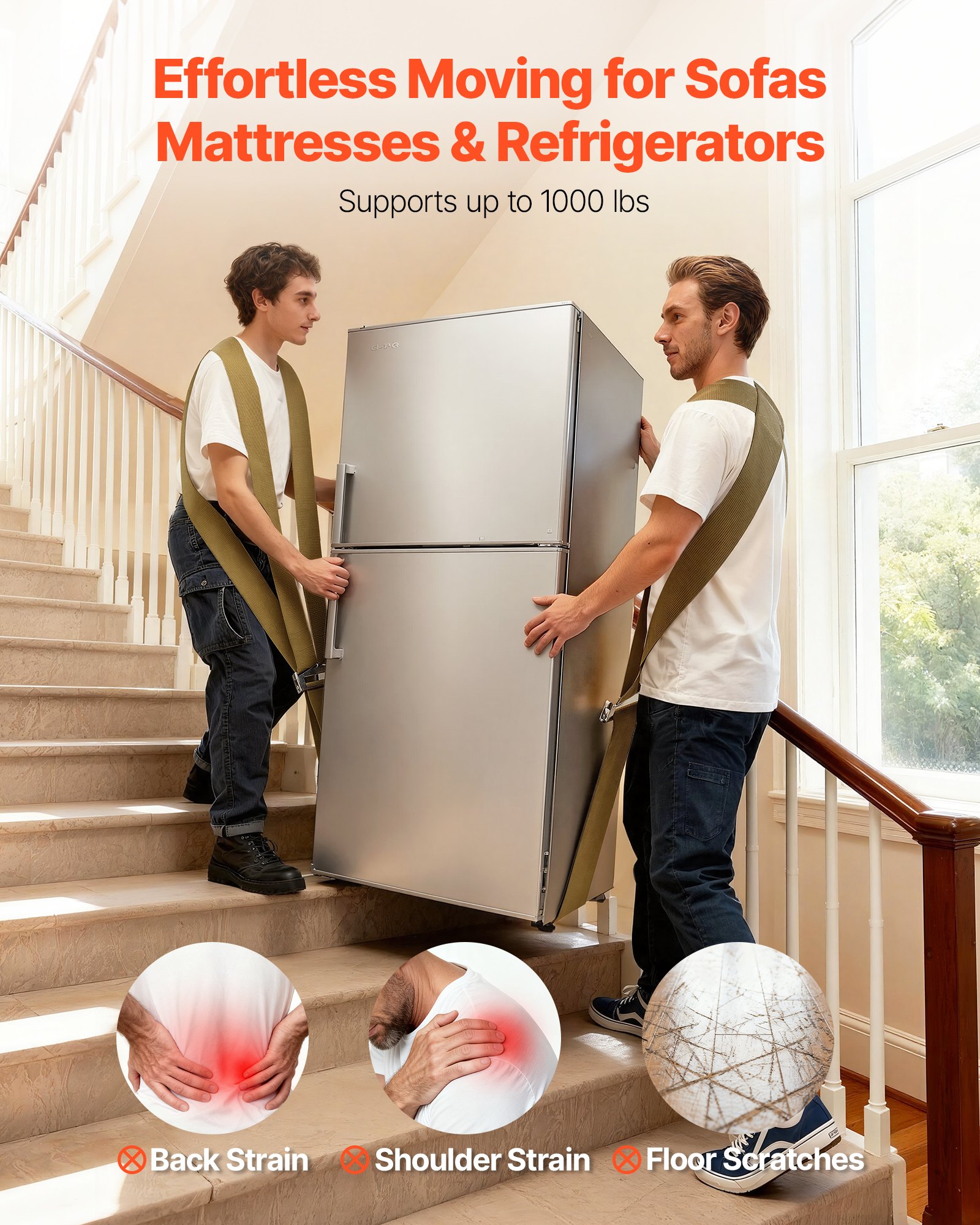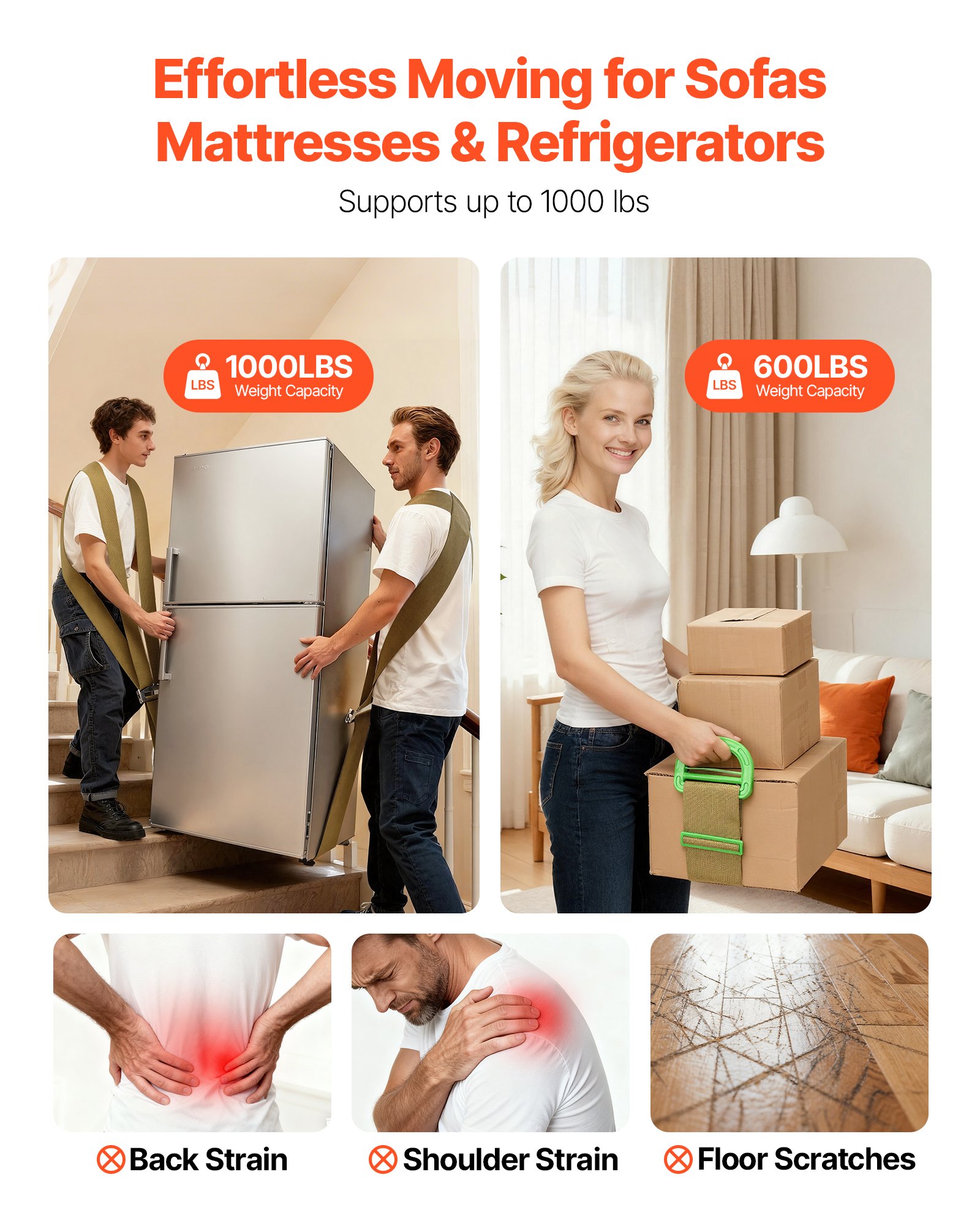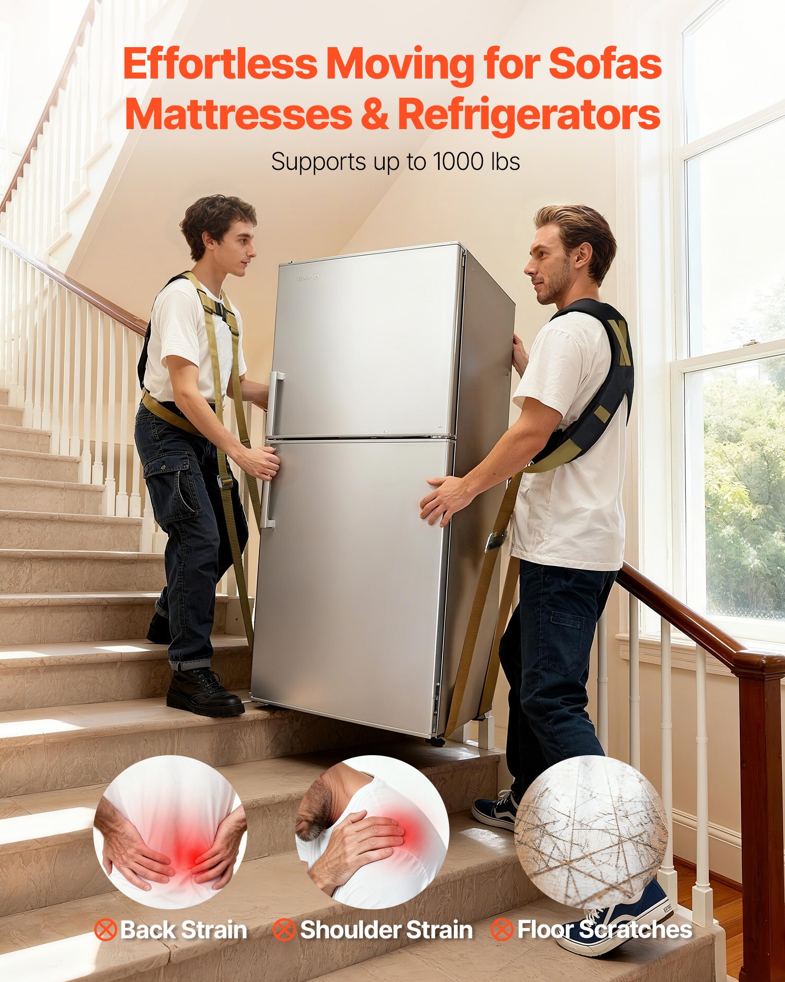 Moving Straps, Supports up to 453.6 kg, 2-Person Lifting and Moving System with 2 Harness Straps & 2 Load-bearing Straps, Adjustable Lifting Shoulder Straps Move Furniture Appliances Mattresses