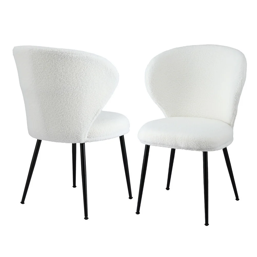 Artiss 2x Dining Chairs Sherpa Boucle Wing Back White