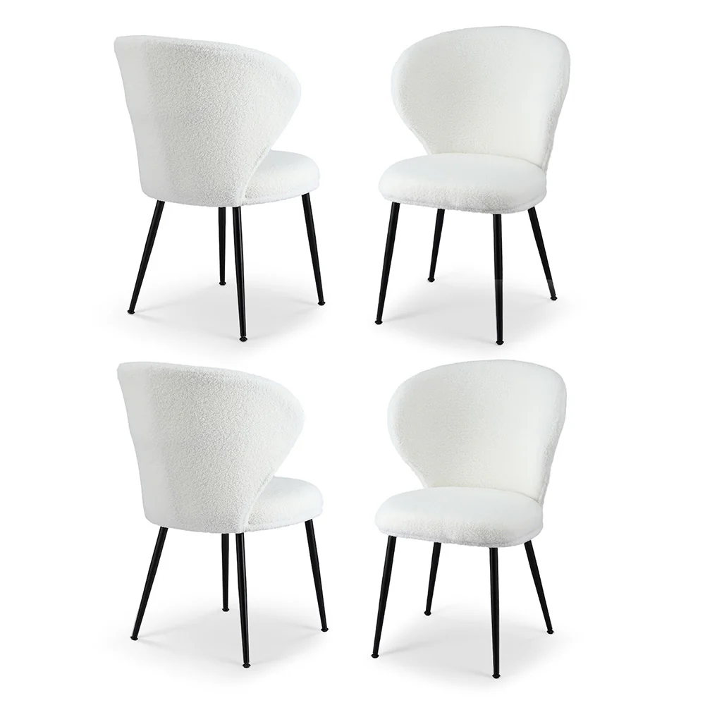 Artiss 4x Dining Chairs Sherpa Boucle Wing Back White