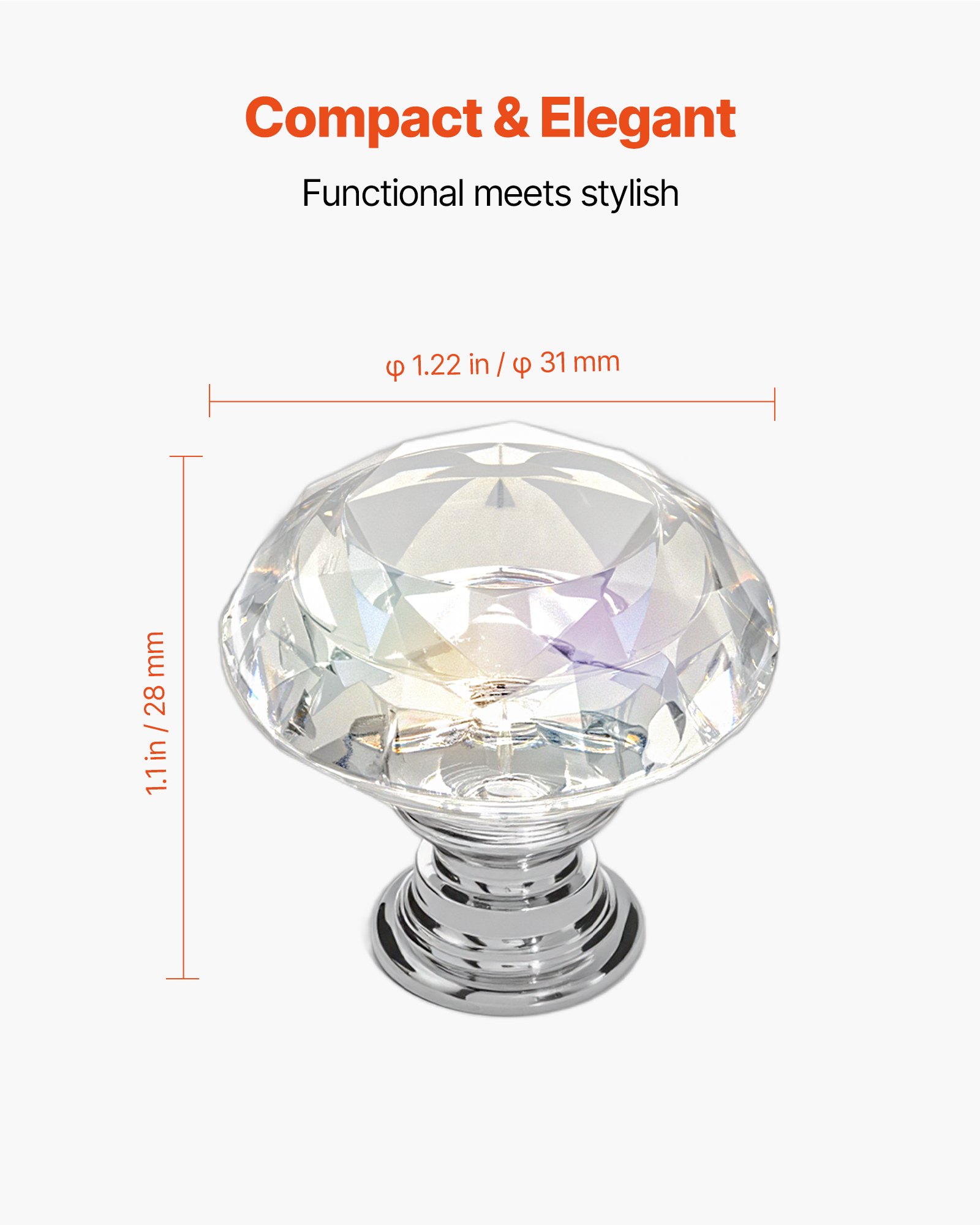 Cabinet Knobs, 12 Pack, 31 mm Acrylic & Zinc Alloy Drawer Pulls Door Handles, Diamond Kitchen Solid Knobs Dresser Handles, Cupboard Hardware with Screws for Bathroom Closet Cabinets Drawers