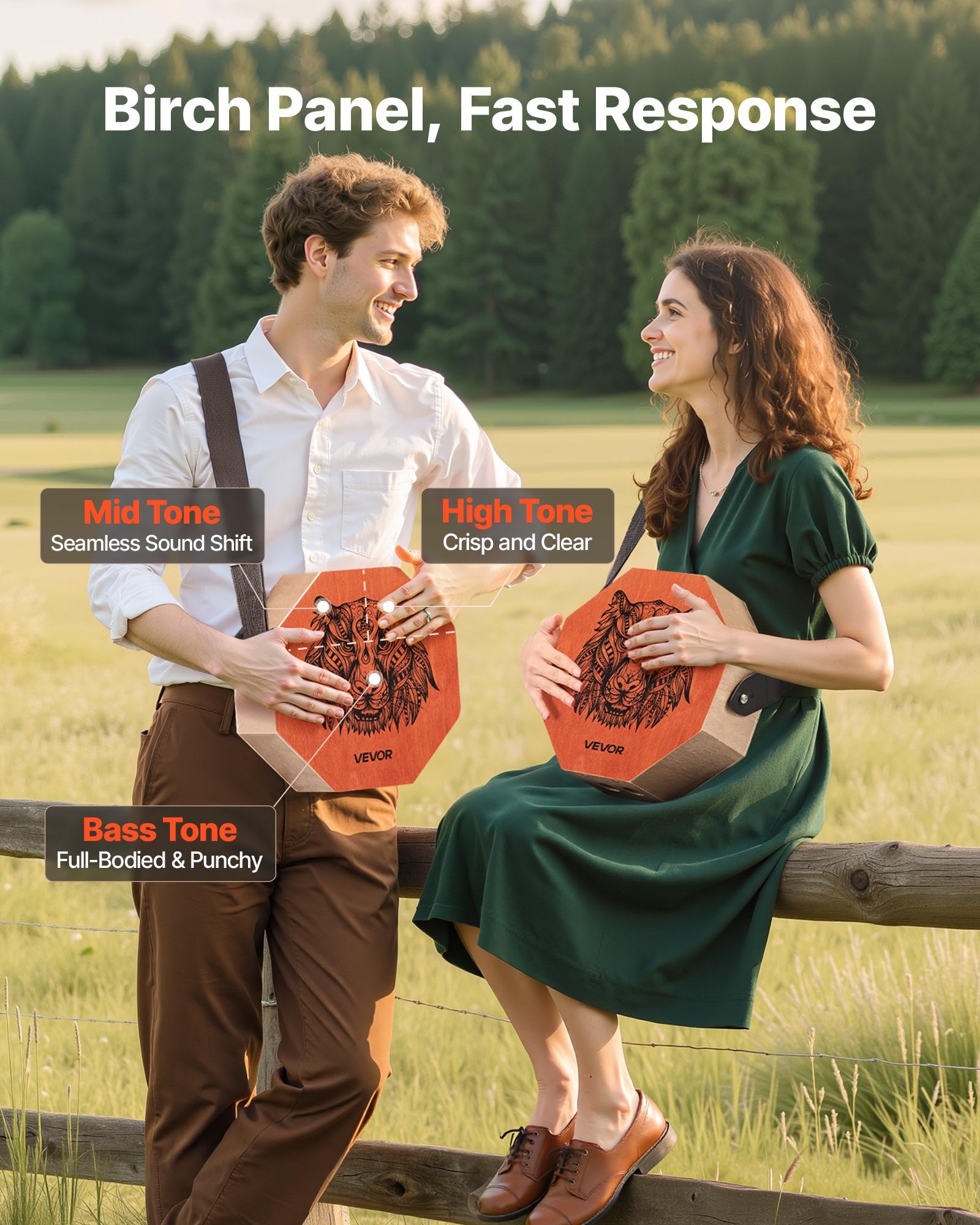 Unique Cajon Box Drum, with Internal Guitar Strings, Portable Wooden Percussion Box, Birch Wood Drum Musical Instrument with Adjustable Strap, for Beginners & Professionals, 295 x 295 x 100 mm