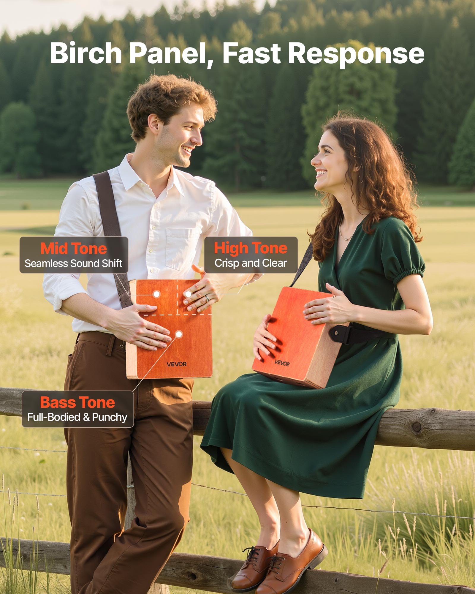 Large Cajon Box Drum, with Internal Snare Wires, Lightweight Wooden Percussion Box, Birch Wood Drum Musical Instrument with Silicone Feet, for Beginners and Professionals, 305 x 305 x 508 mm