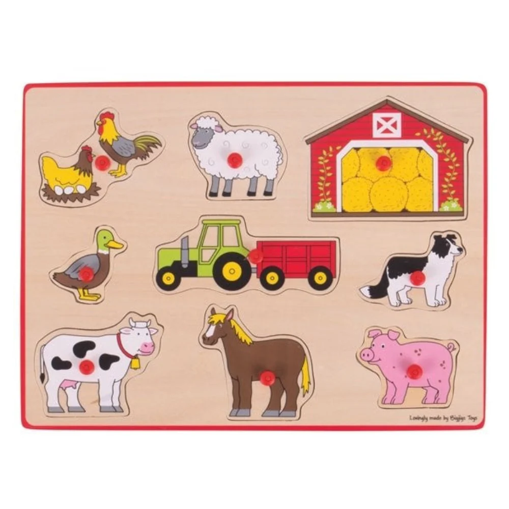 Bigjigs Toys Farm Animal Lift Out Puzzle for Toddlers Wooden Peg Puzzle Toy for Kids