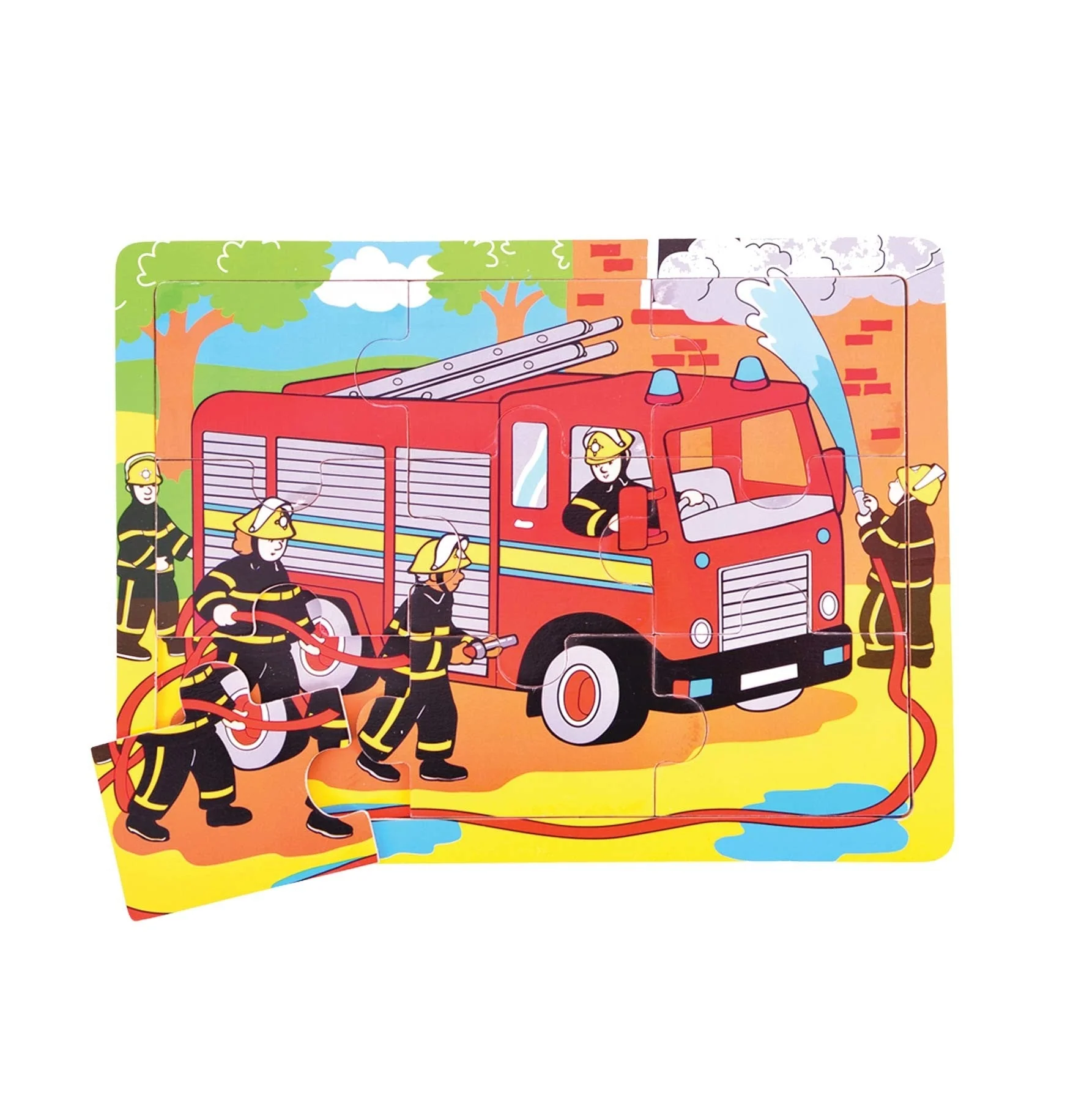 Bigjigs Toys Wooden Medium Fire Engine Tray Puzzle for Kids
