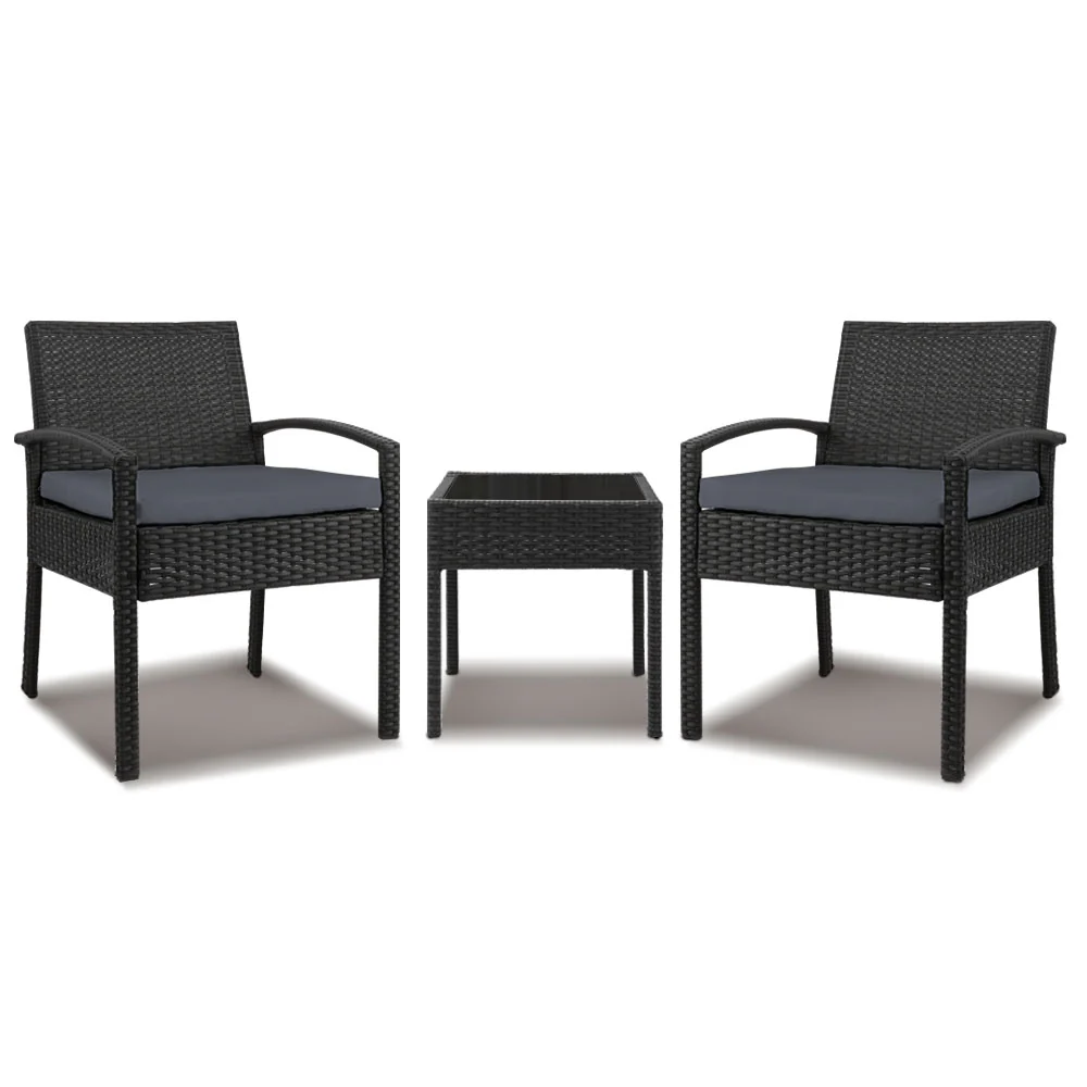 Gardeon 3PC Outdoor Furniture Bistro Set Lounge Setting Chairs Table Patio Black