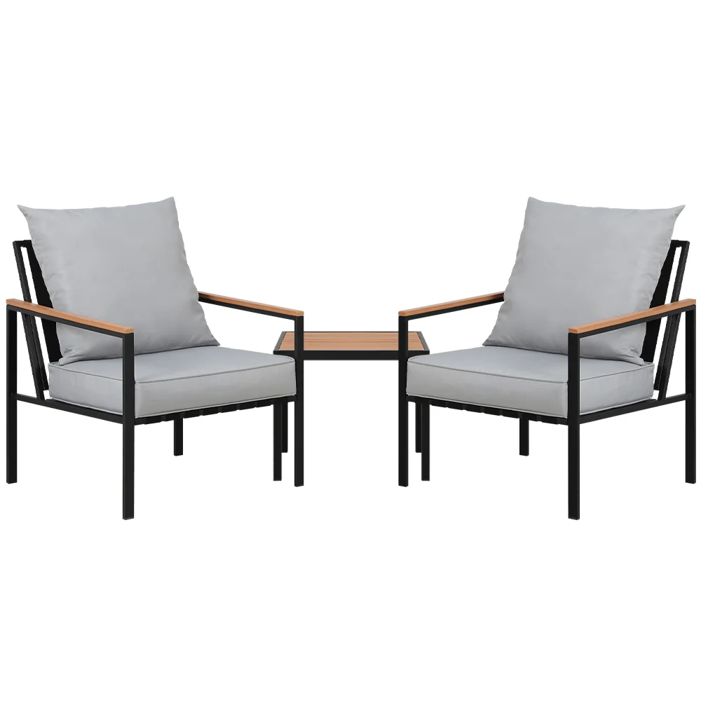 Gardeon 3PC Outdoor Bistro Set Patio Furniture Lounge Chairs Table Garden
