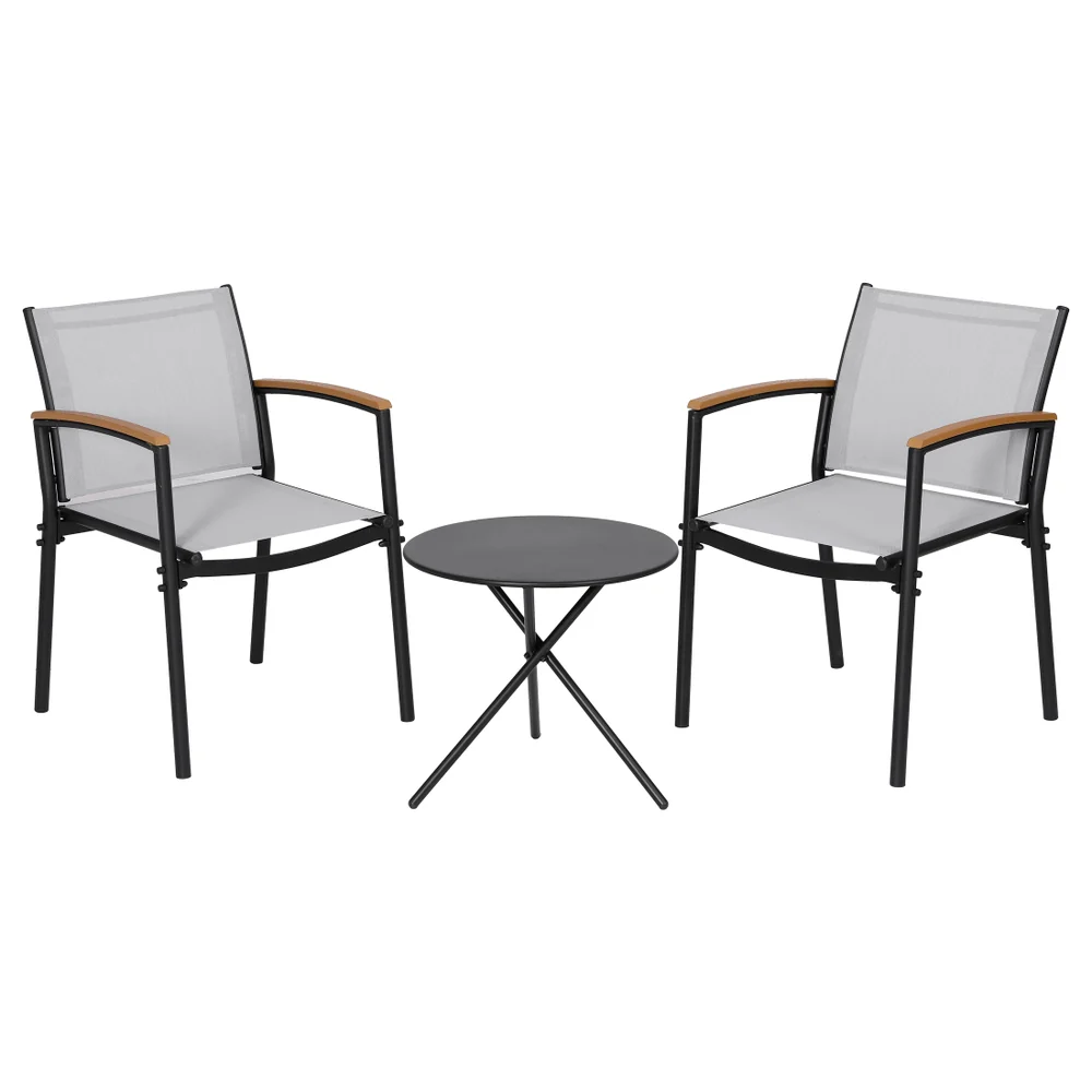 Gardeon 3PC Outdoor Bistro Set Table and Chairs Steel Dining Chair Patio Furniture Textilene