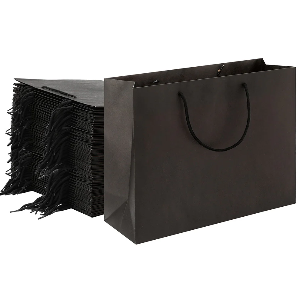 50pcs Bulk Paper Bags Pack Shopping Retail Gift Bags Reusable Soft Handle Black