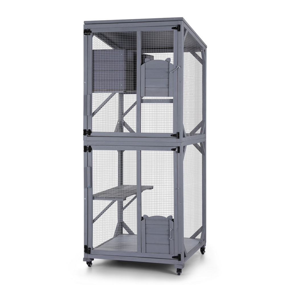 i.Pet Outdoor Cat House Shelter 72cm x 72cm x 127cm Rabbit Hutch Wooden Condo Small Outdoor Cat House