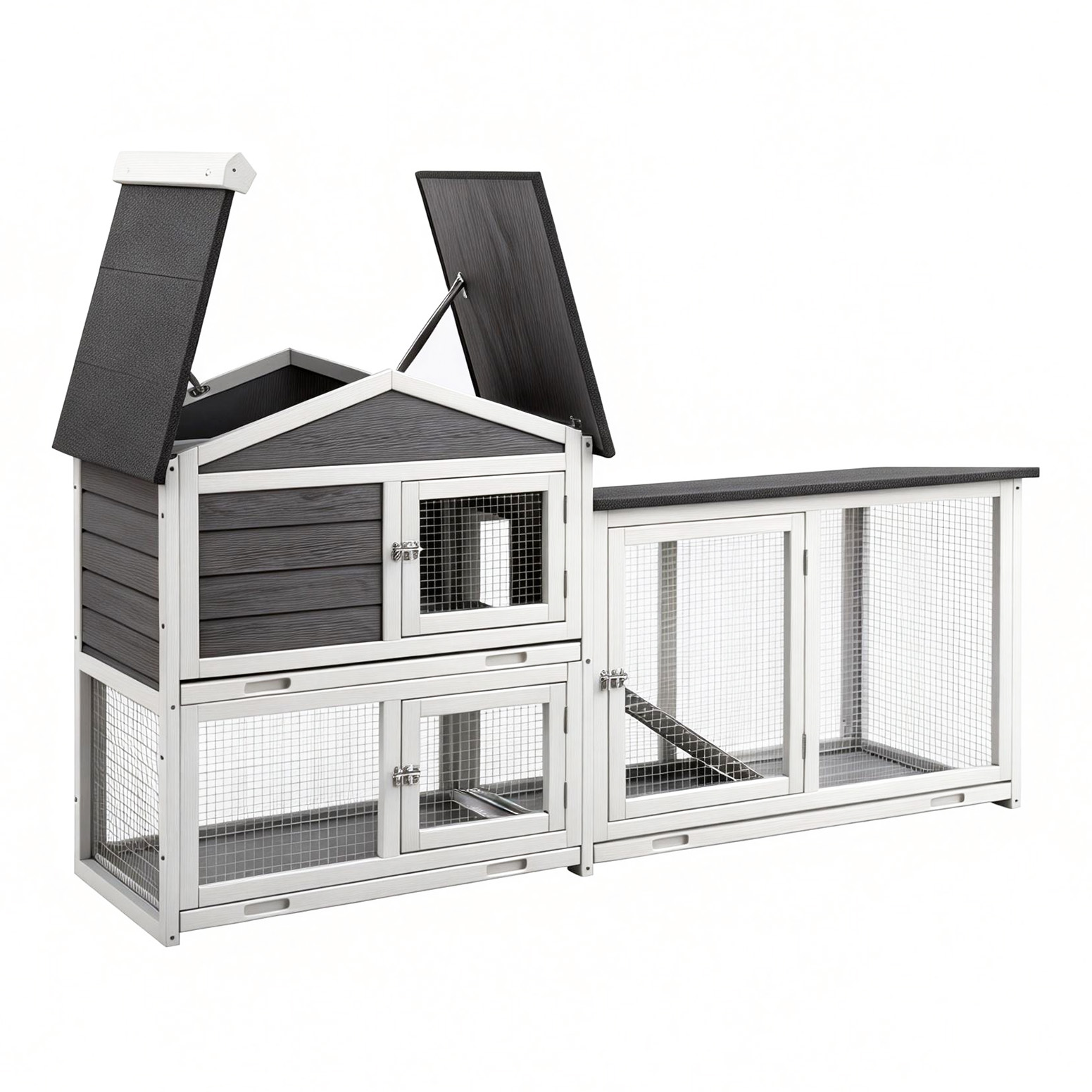 i.Pet Chicken Coop Large Outdoor Rabbit Hutch Chook House Hatch Box With Run Grey White