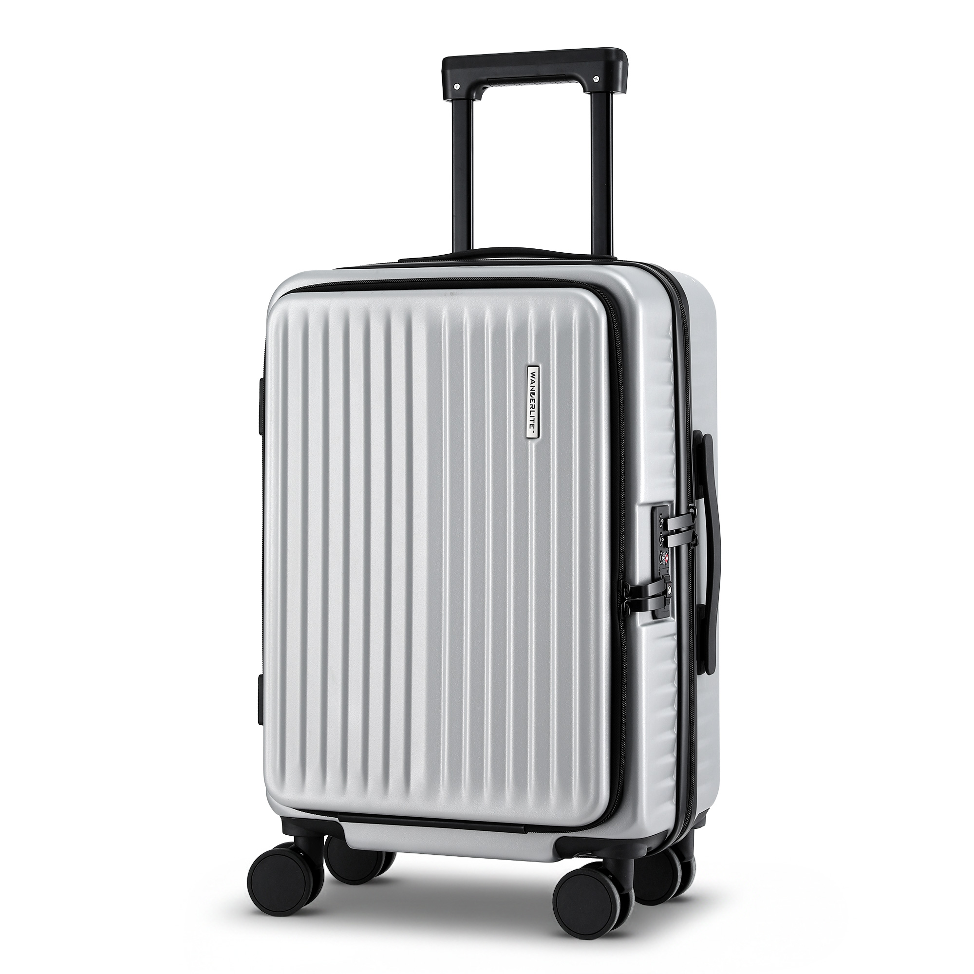 Wanderlite 20" Luggage Suitcase Front Pocket Travel Carry On Dual TSA Silver