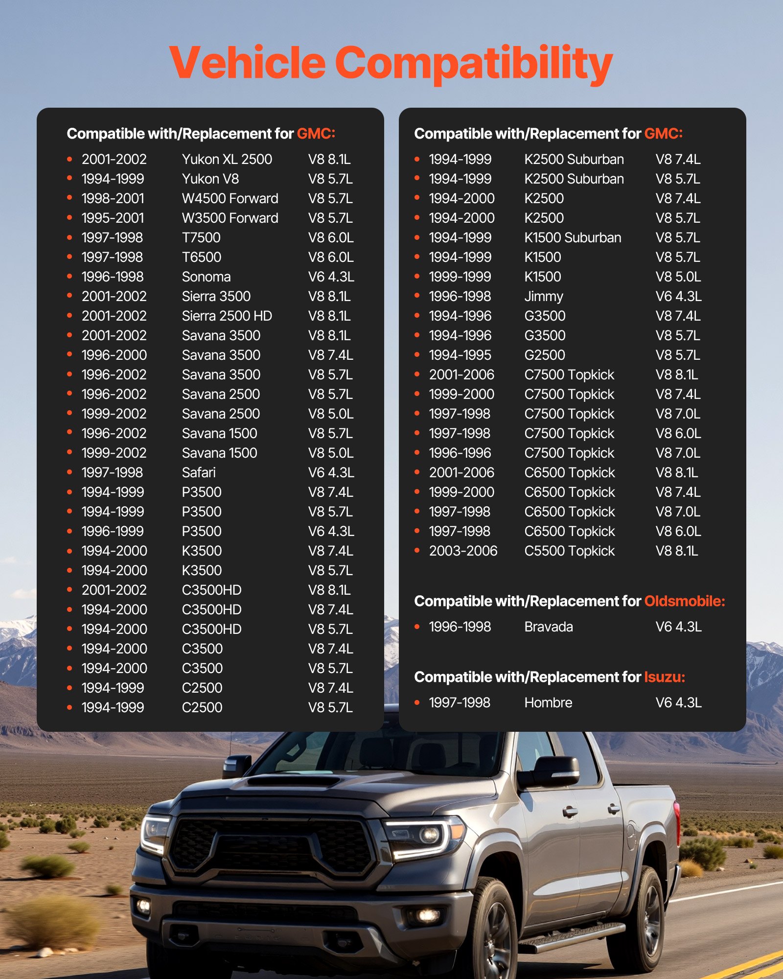 Starter 6449, Starter Motor Replacement Compatible with Oldsmobile Bravada V6 4.3L 96-98, Isuzu Hombre V6 4.3L 97-98, GMC Yukon XL 2500 V8 8.1L 01-02, OEM 106449L 12564108 9000879 410-12153R