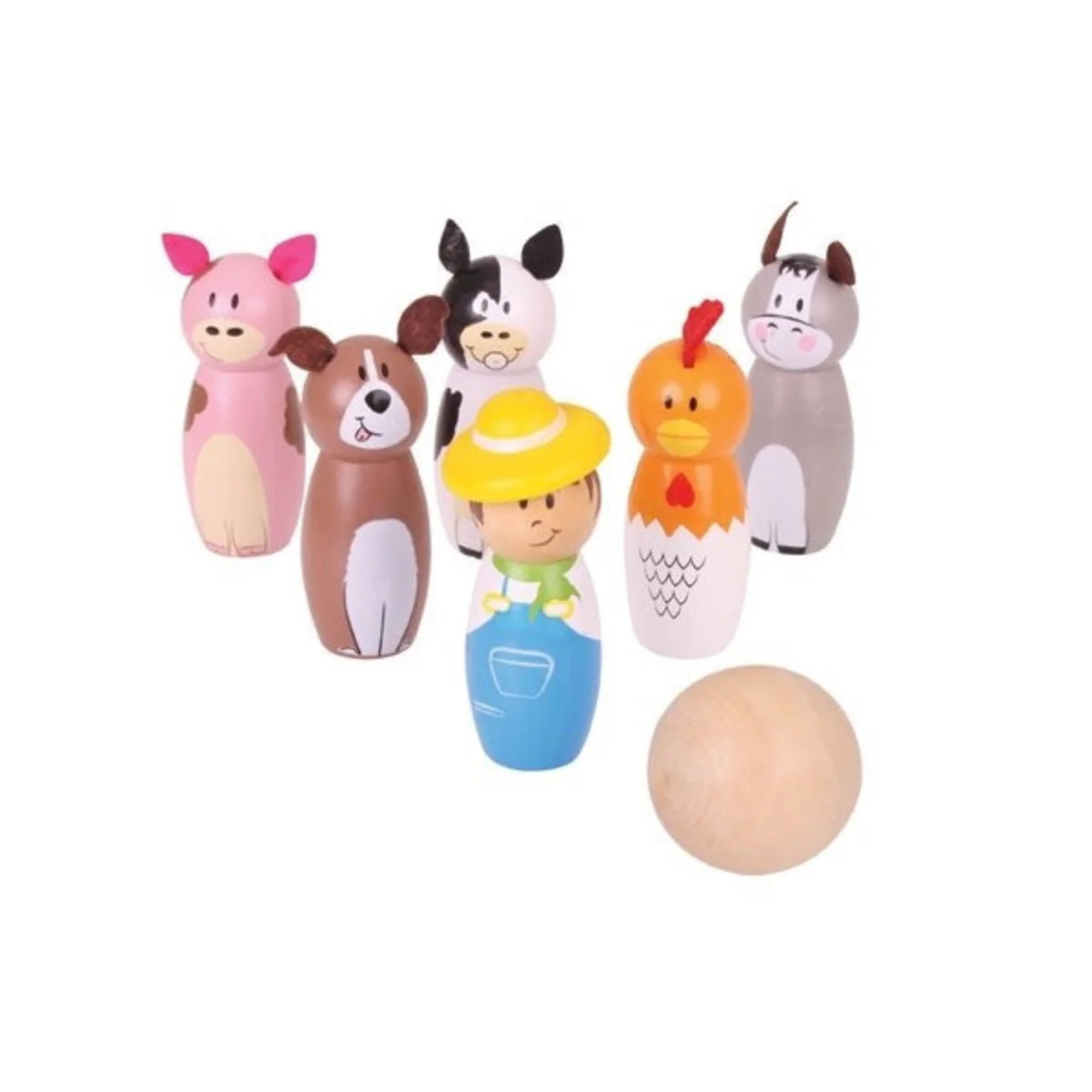 Bigjigs Toys Wooden Farm Skittles Classic 7 Piece Bowling Game for Kids