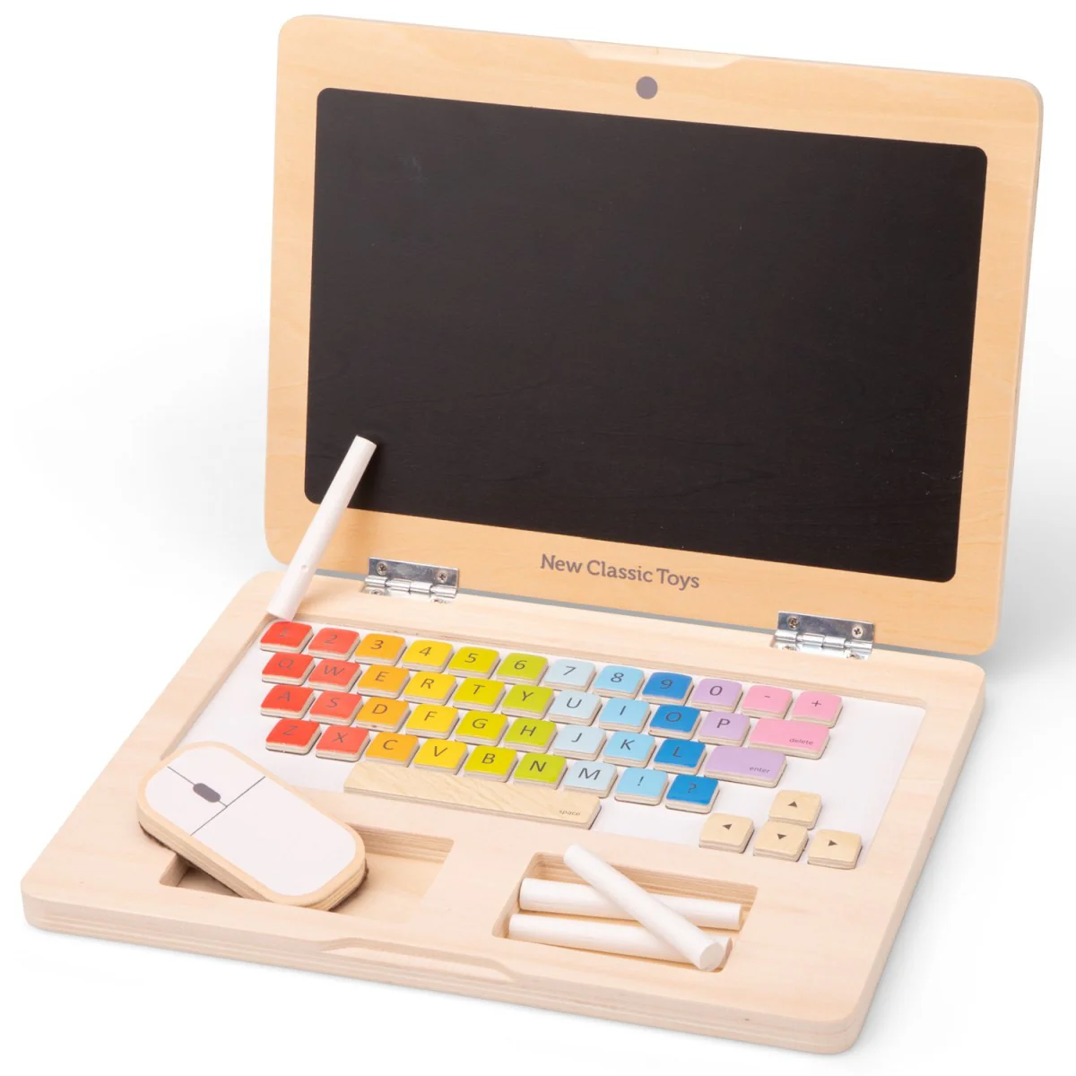 New Classic Toys Wooden Educational Toy Laptop Magnetic Keyboard & Blackboard Screen