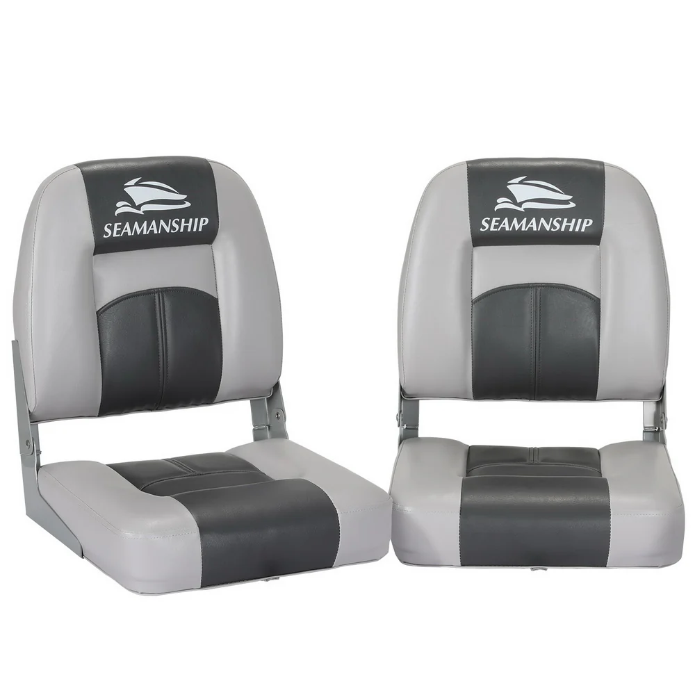 Seamanship 2X Folding Boat Seats Marine Seat Swivel High Back 12cm Padding