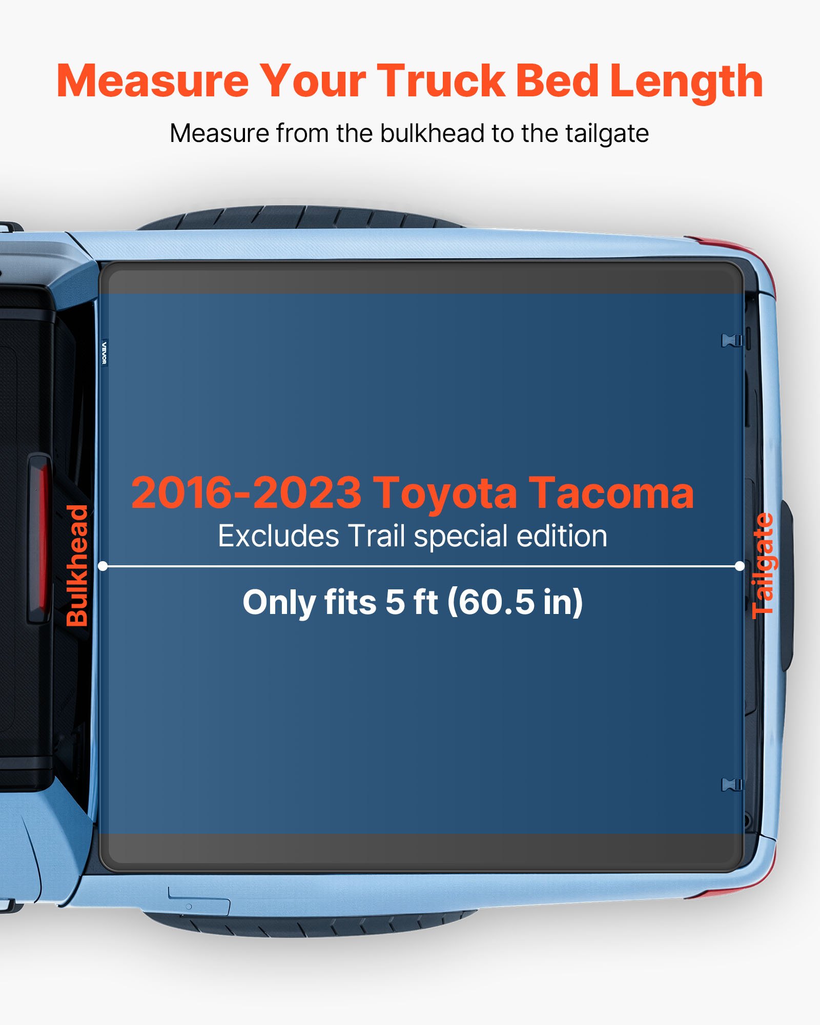 Soft Tri-Fold Truck Bed Tonneau Cover, Compatible with 2016-2023 Toyota Tacoma (Excl. Trail Edition) 153.7 cm Bed with Track Rail System, Fleetside, Waterproof Soft Folding Truck Tonneau Cover