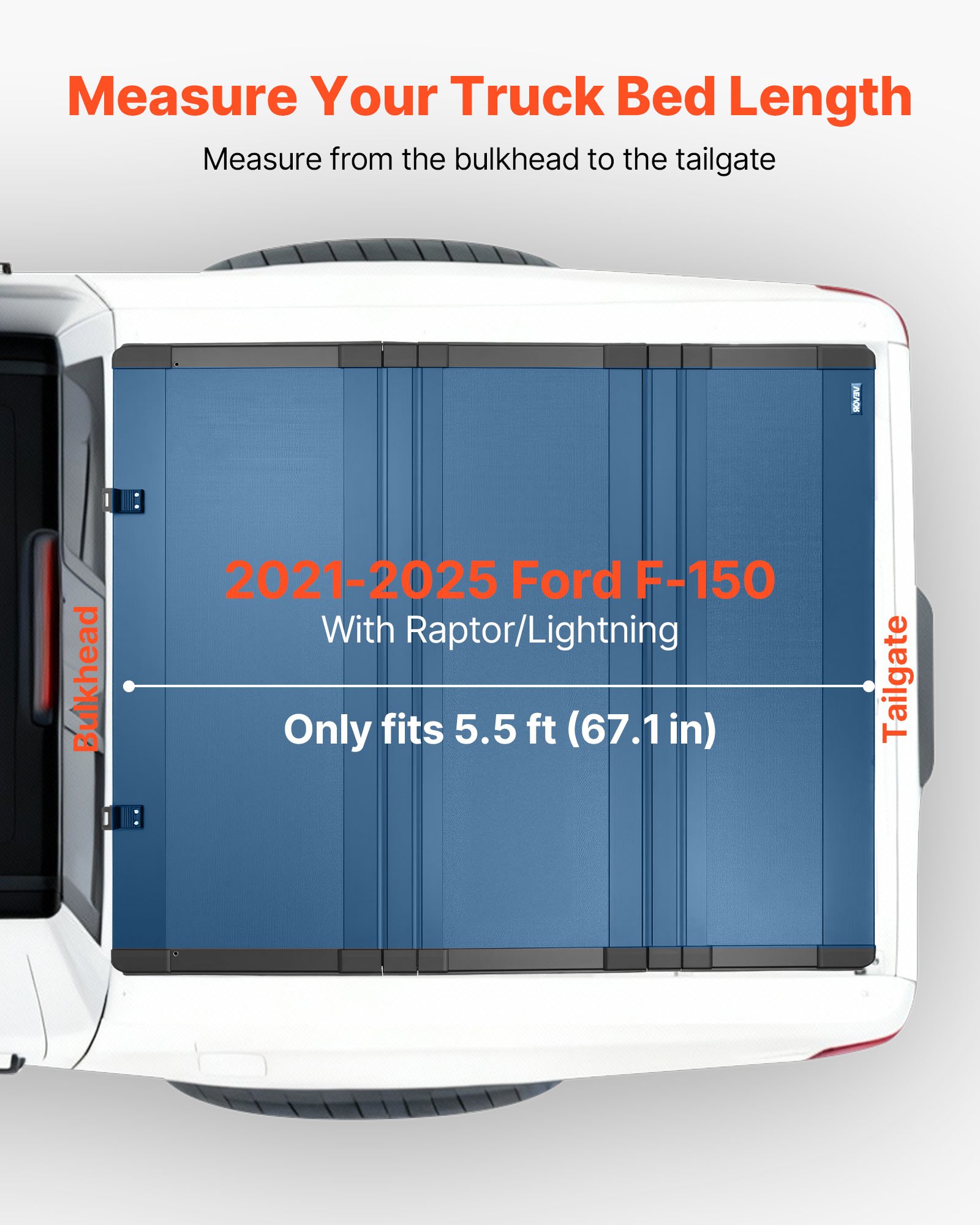Hard Tri-Fold Truck Bed Tonneau Cover, Compatible with 2021-2025 Ford F-150 (Incl. Raptor/Lightning) 170.4 cm Bed, Waterproof Low-Profile Folding Tonneau Cover with Aluminum Alloy Support Bar