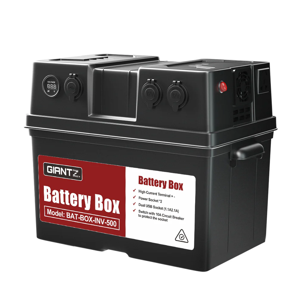 Giantz Battery Box 500W Inverter Deep Cycle Battery Portable Caravan Camping USB