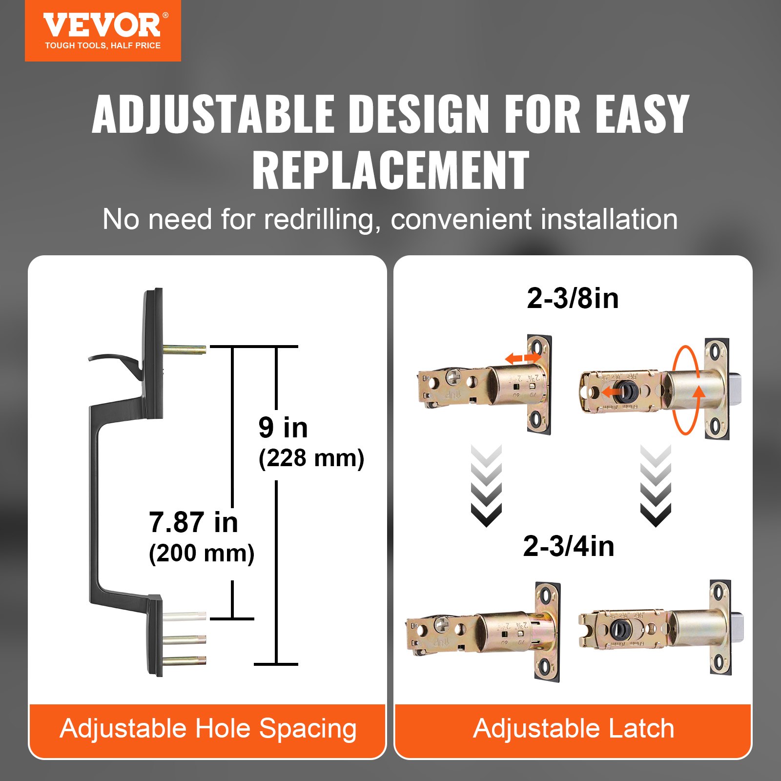 Front Door Handle and Deadbolt Set, Matte Black Front Door Lock Set with Interior Knob, Single Cylinder Handleset Adjustable Hole Spacing, for Right and Left Handed Entrance and Front Door