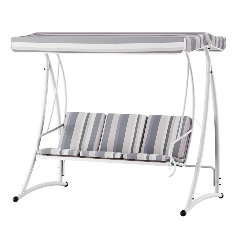Gardeon Outdoor Swing Chair Garden Bench Furniture Canopy 3 Seater White Grey