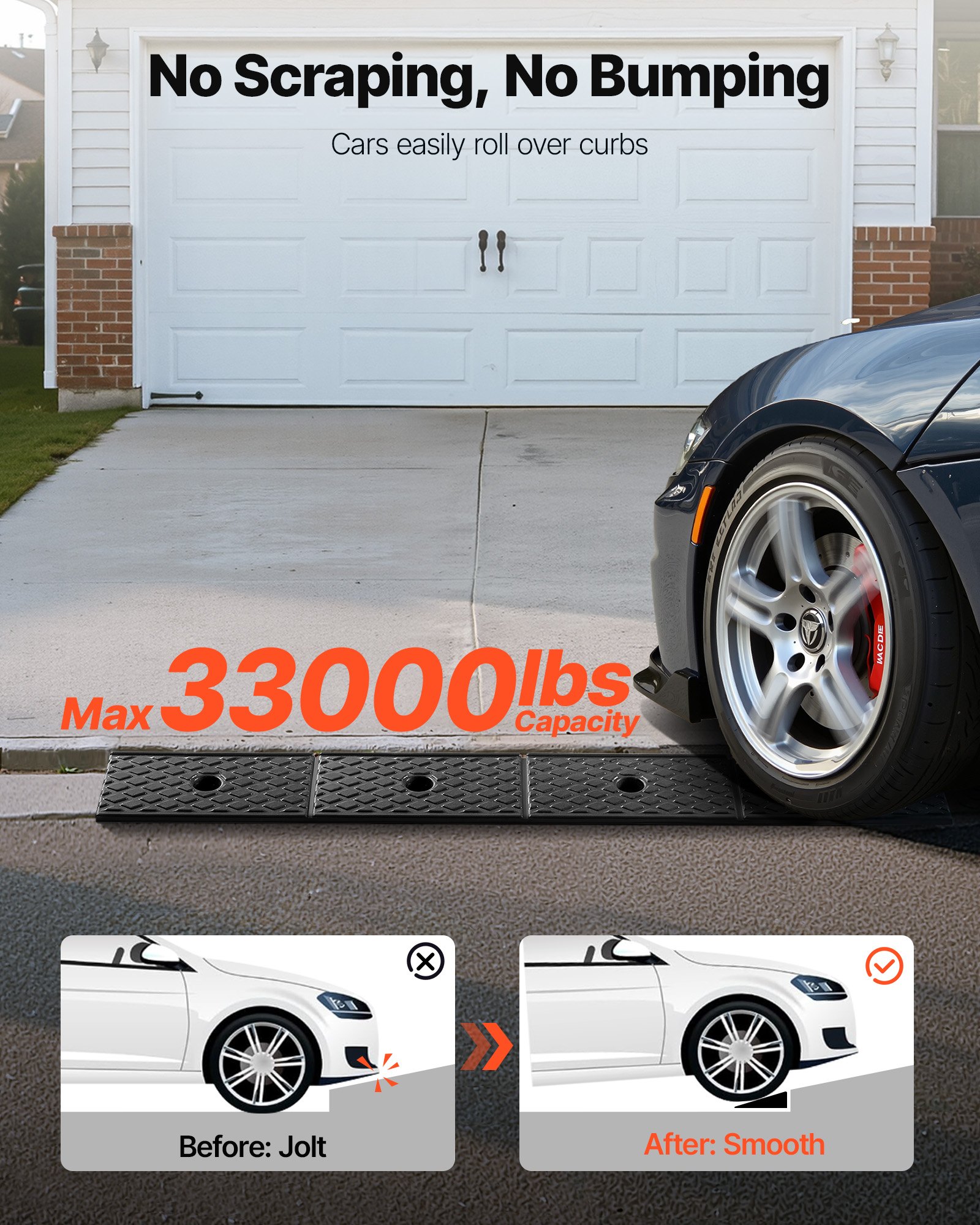 Driveway Curb Ramp, 3.175 Tons Load Capacity, 17.8 cm Rise Height Heavy Duty Curbside Bridge Ramp with Drainage Tank for Wheelchairs, Strollers, Motorcycles, Cars, Lawn Mowers & Trailers, 2 Pack