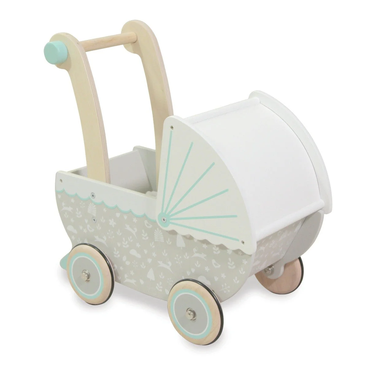 Indigo Jamm Wooden Petworth Pram Scandinavian Style Doll Stroller with Rubber Wheels