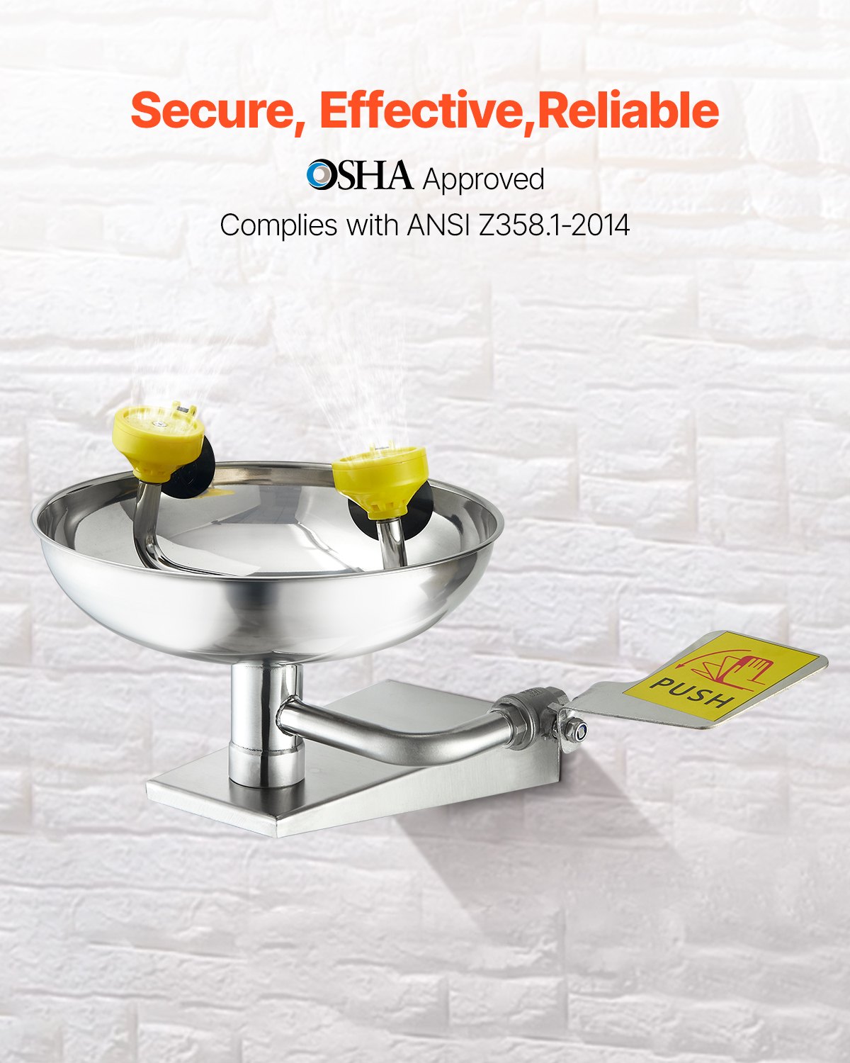 Emergency Eye Wash Station, Stainless Steel Wall-Mounted Eyewash Unit, First Aid Eye Wash Sink 16.14 x 12.99 x 9.45 Inches, Ideal for Laboratories, Factories, Schools, Construction Sites