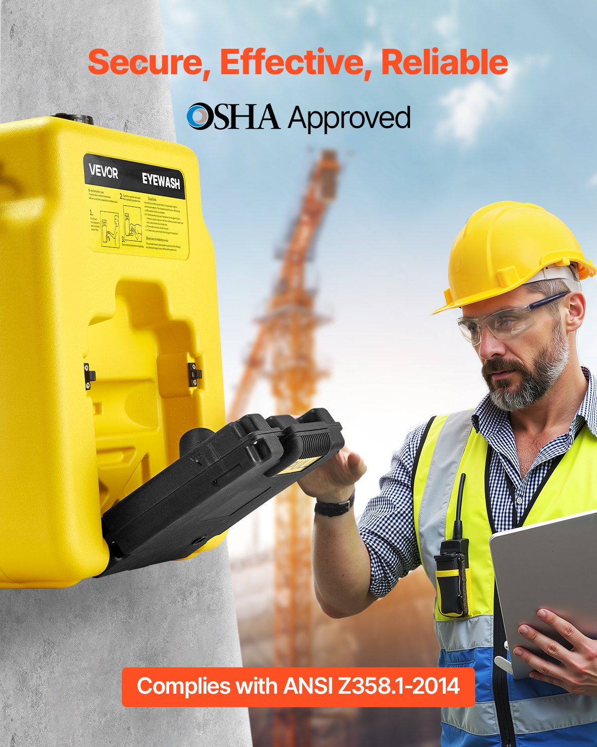 Portable Eye Wash Station 14 Gal, OSHA-Approved Eyewash Station Wall-Mounted/On Flat Surface, Emergency Eye Wash Unit with 2 Sprays, First Aid Eyewash Units for Schools, Labs, Factories, Yellow