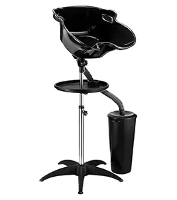 Portable Shampoo Bowl, Shampoo Sink for Washing Hair with Adjustable Height and Angle, Portable Salon Sink with Drain Hose and Star-Shaped Base for Barbershop Beauty Salon Spa Center Use, Black