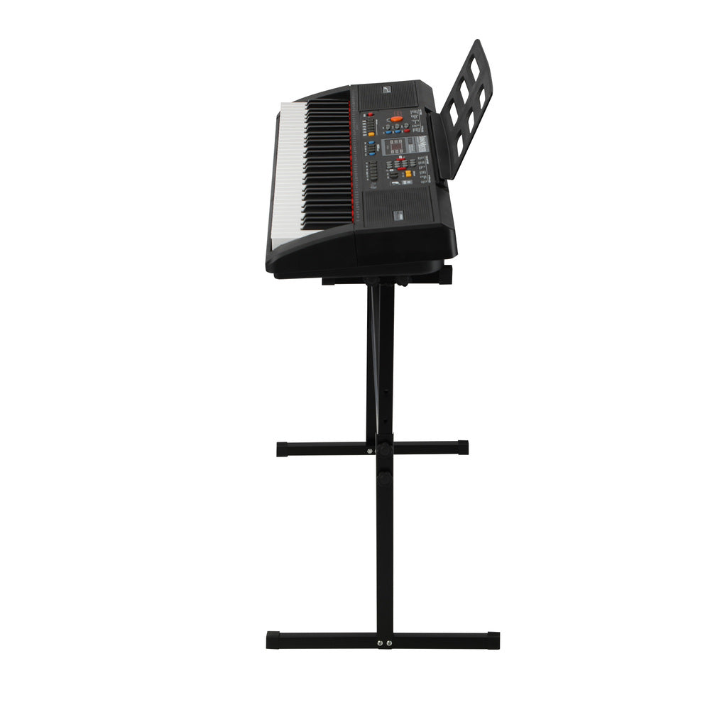 This electronic keyboard is ideal for both intermediate players and beginners ready to explore their musical passion Designed with 61 full size keys slightly wider than standard it provides better control and more accurate playing An intuitive LED digital display helps navigate an extensive range of features including 200 tones 200 rhythms and 12 percussion modes plus effects such as sustain vibrato echo and chord tone to encourage creative expression Essential controls include master volume accompaniment volume and tempo plus a keyboard split feature for dual player interaction Auto chord and rhythm programming modes make one person band performances possible while record playback and program functions allow users to capture edit and refine their own compositions Three built in lesson modes guide learners step by step through songs with the support of 60 demo tracks A headphone jack enables quiet practice without disturbing others while microphone and audio input output ports add more ways to perform live or privately A USB port allows easy access to new compositions while the adjustable stand and music sheet holder provide fast convenient setup Certified to EN71 RoHS standards and powered by an SAA approved adaptor this keyboard delivers safe reliable performance for everyday use